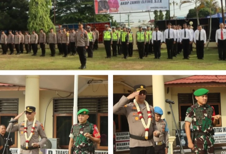 Polres Bungo Gelar Apel Tradisi Penyambutan Kapolres Baru AKBP Zamri Elfino