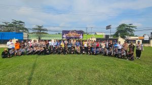 Kegiatan yang berlangsung di Halaman Mapolsek Simpang Pematang ini dipimpin langsung oleh Kapolsek Simpang Pematang dan dihadiri oleh unsur Forum Koordinasi Pimpinan Kecamatan (Forkopimcam) Simpang Pematang dan Panca Jaya, Tokoh Masyarakat, Tokoh Agama, seluruh Ormas se-Kecamatan Simpang Pematang serta seluruh personel Satuan Linmas se-Kecamatan Simpang Pematang, Kabupaten Mesuji, Jumat (17/04/26) Pagi