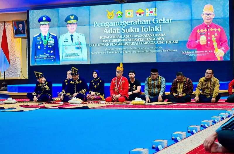 KENDARI, PersKpkNews.com – Kepala Staf Angkatan Udara (KSAU) Marsekal TNI M. Tonny Harjono dan Gubernur Sulawesi Tenggara Andi Sumangerukka resmi menyandang gelar kehormatan adat Tolaki, Minggu (26/4/2026) di Rumah Jabatan Gubernur Sultra.
